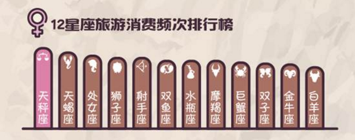 《报告》显示,按星座划分,天秤座、天蝎座、处女座的女性旅游消费频次最高,紧随其后的分别是狮子座和射手座。