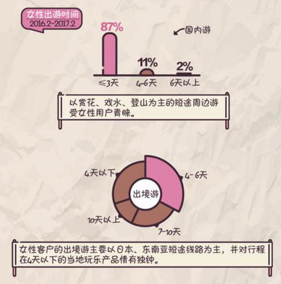 在现代生活中,女性对生活品质的要求逐渐提高,通过旅游来放松心情、缓解压力已经成为女性生活中不可或缺的一部分,且在旅游消费决策中,女性用户的喜好占到了“举足轻重”的地位。