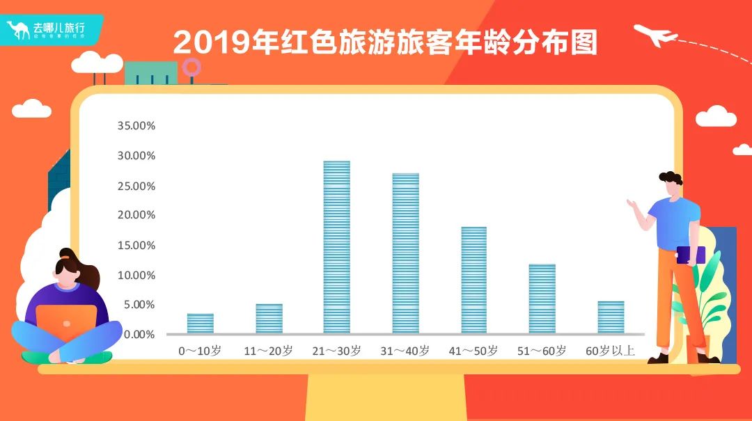 为了排除疫情的影响,使用去哪儿平台2019年的数据,对于红色旅游的旅客群体进行分析,可以看到这类旅客具有几个鲜明的特征。