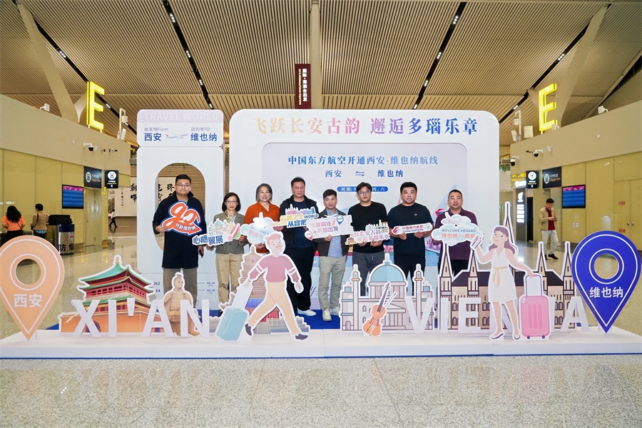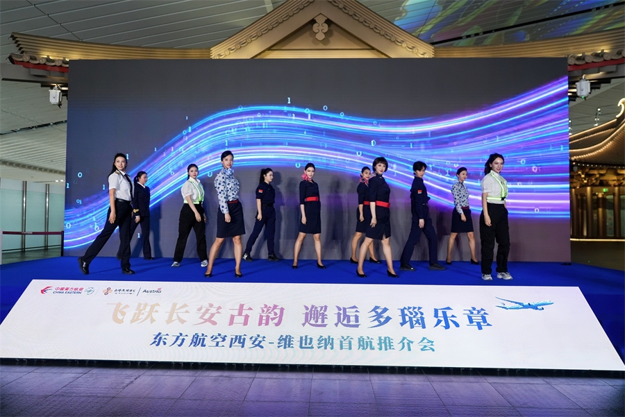 4月19日下午,东航在西安咸阳国际机场T5航站楼隆重举办了“飞跃长安古韵邂逅多瑙乐章”西安—维也纳首航启航仪式。仪式上,东航正式发布新航线信息,全面推介西安枢纽航线网络布局及特色航空产品,向社会各界展示了助力区域对外开放的航空实力。