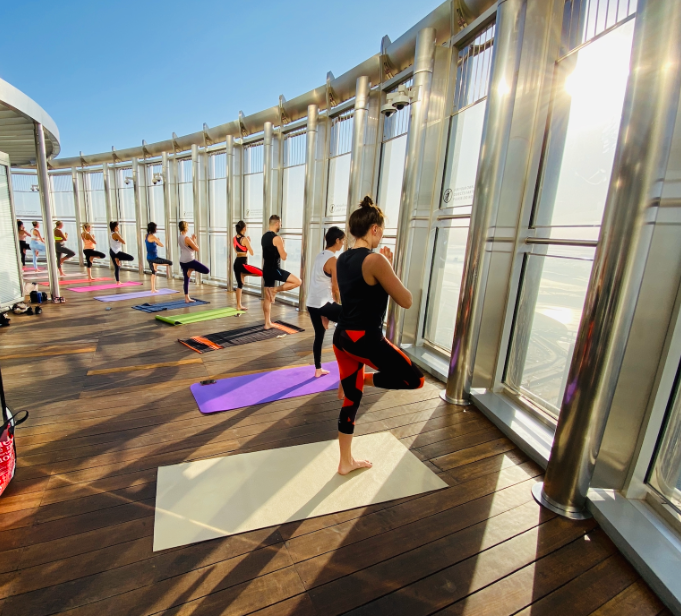 在世界最高的建筑哈利法塔(Burj Khalifa),这里在465米高空之处提供独特的瑜伽体验,早起鸟可以捕捉到清晨的第一缕阳光,同时,从高空俯瞰这座城市的美景。