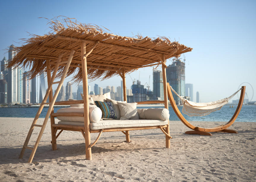 迪拜当前爆红的超“ins风”打卡地Koko Bay,是一家位于新开业的棕榈岛西海滩(West Beach)上的海景露台餐厅。受巴厘岛海滩的启发,该处提供了阿拉伯湾海景与标志性的迪拜码头城市天际线景观,在这里,可以捕捉到这座城市中的最美日落。