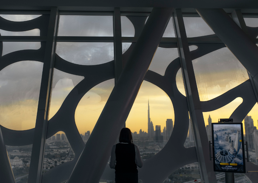 迪拜相框(Dubai Frame)现已成为备受游客和当地人推崇的迪拜最著名新兴景点之一。迪拜相框位于扎比尔公园(Zabeel Park),为游客呈现一幅迪拜的城市全景。它的造型酷似一个相框,往北可以眺望到迪拜的老城区,往南则可以欣赏到迪拜的现代风格城市天际线勾勒出的唯美风光。你可以赶在日落之前登上其天空观景台(Sky-deck)欣赏余晖之下的迪拜,还可以体验50米透光磨砂玻璃桥,朝地面望去,会感觉自己仿佛在空中漫步一般。
