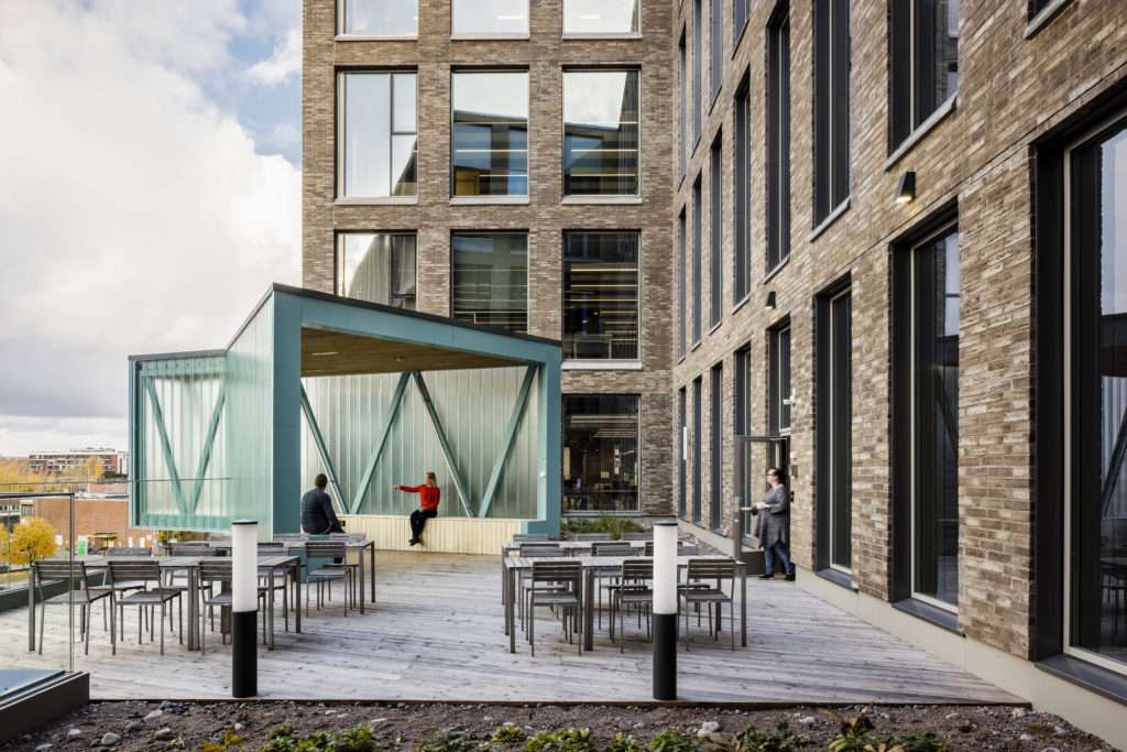 大楼的结构设计巧妙地将新旧结合起来:在红砖拱顶外观和大型拱形窗户的映衬下,Kalasatama地区的旧工业环境特点表达的淋漓尽致,但这座拥有旧时代气息的建筑背后却隐藏了诸多现代建筑技术和工作空间。大楼被5000平方米的绿色屋顶覆盖,包括22,000株植物和太阳能电池板。太阳能电池板产生的电力用作大楼的照明系统。绿色屋顶则作为一个城市自然研究的实验室,它有效的延缓了雨水径直流到街道的时间。这样的设计不仅有效地利用了清洁能源,而且使智能与自然完美共存。这栋大楼的空间设计和工作场所建立是通过一种全新的方式来进行的,即使用数字化工具和数据模型进行规划布局。该数据模型的建立始于早期阶段对员工愿望和需求的调研。在多个快闪活动上收集员工对新工作环境的愿望及想法,并将这些建议输入到数据模型中。对于市民和赫尔辛基来说,这栋新大楼的设施、数字解决方案和新型工作方法都为双方的合作提供了有利环境。
