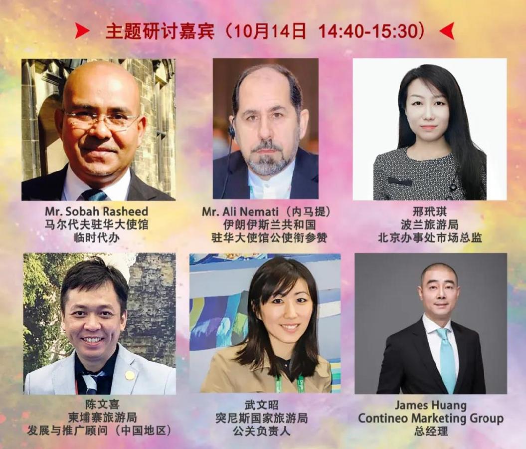本环节以“厉兵株马--境外目的地对中国市场的期待及政策”为主题,由Contineo Marketing Group总经理 James Huang先生主持,马尔代夫驻华大使馆临时代办Mr. Sobah Rasheed、伊朗伊斯兰共和国驻华大使馆公使衔参赞Mr. Ali Nemati(内马提)、波兰旅游局北京办事处市场总监邢玳琪女士、柬埔寨旅游局发展与推广顾问(中国地区)陈文喜先生、突尼斯国家旅游局公关负责人武文昭女士参与研讨,分享对疫后中国出境旅游市场新观察、新思考与新战略。