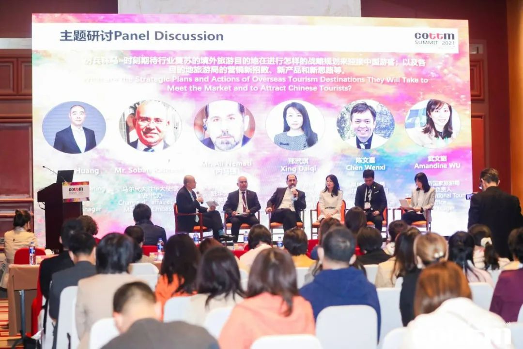 10月14日,由英国塔苏斯集团主办的中国出境旅游交易会(COTTM)峰会在北京长城饭店盛大举行!中国旅游研究院(文化和旅游部数据中心)院长戴斌先生、马尔代夫驻华大使馆临时代办Mr. Sobah Rasheed、伊朗伊斯兰共和国驻华大使馆公使衔参赞Mr. Ali Nemati(内马提)、西班牙阿拉贡旅游局中国首席代表Rafael Llopis Baeza先生、马尔代夫旅游局中国代表处客户经理韩晶女士、波兰旅游局北京办事处市场总监邢玳琪女士、柬埔寨旅游局发展与推广顾问(中国地区)陈文喜先生、以色列国家旅游部驻上海办事处旅业经理东志成先生、突尼斯国家旅游局公关负责人武文昭女士、北京凯撒晟和国际旅行社有限公司副总经理胡婷婷女士、华程国旅集团VP兼北京公司总经理潘渤先生、深圳中国国际旅行社有限公司副总经理韩晨先生、北京春秋旅游总经理杨洋先生、鸿鹄逸游·携程太美旅行CEO郭明先生、6人游创始人&CEO贾建强先生、 一起飞国旅总经理陈谨哲先生、尚游汇文旅董事长钟晖先生、旅业资讯主编刘娜女士、中国出境旅游交易会COTTM中国代表卿清晖女士等重磅演讲嘉宾及中国出境旅游运营商/代理商/平台商等行业同仁出席了峰会。英国塔苏斯集团LONDON总部、中国出境旅游交易会COTTM项目总监Matt Thompson先生也通过视频的方式对此次峰会进行了致辞。本届峰会由Contineo Marketing Group总经理 James Huang先生主持。