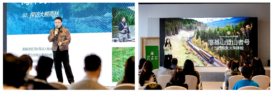 右:6人游定制旅行副总裁李妍分享“从雨林到落基山”火车旅行体验 © Destination BC