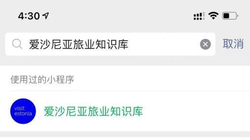 路径一:打开微信,搜索框输入“爱沙尼亚旅业知识库”搜索小程序,点击进入即可,