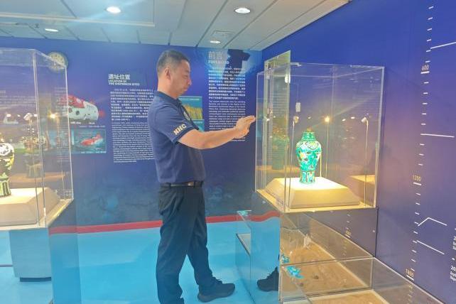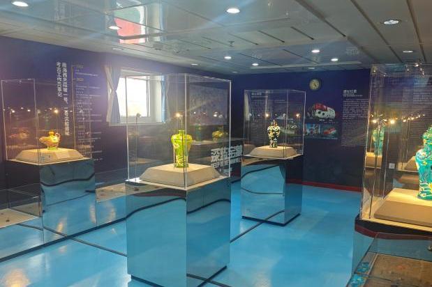 中国(海南)南海博物馆馆长辛礼学介绍,改造后的海上流动博物馆核心展区推出了“深蓝宝藏——南海西北陆坡一二号沉船考古成果特展”主题展览,借助沉浸式场景还原、多媒体数字技术和精美复仿制文物,展现南海西北陆坡沉船遗址的地理位置、深海环境与考古成果。