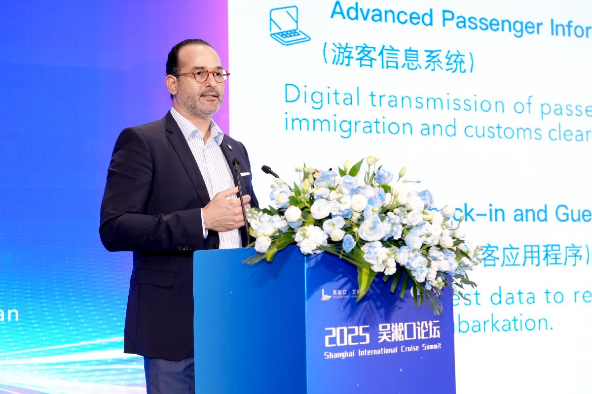 国际邮轮协会(CLIA)全球主席、皇家加勒比游轮集团总裁兼首席执行官杰森·利伯蒂(Jason Liberty)在开幕式发表视频主旨演讲