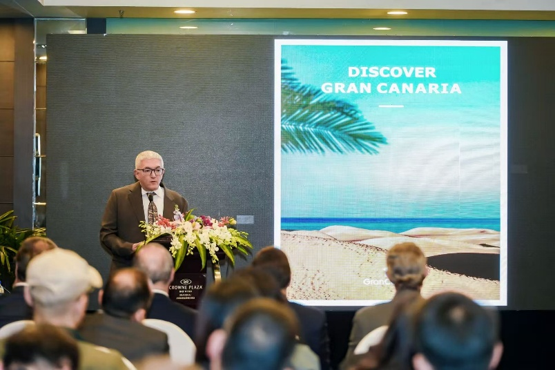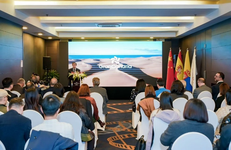 西班牙驻华大使馆旅游参赞豪尔赫·卢比奥(Jorge Rubio)代表西班牙国家旅游局在会上介绍,目前中西间直飞航班已增至每周61班,接近2019年水平的两倍;大加那利机场航线网络完善,可通过马德里、巴塞罗那等城市便捷中转。他进一步指出,2024年西班牙共接待中国游客65万人次,旅游消费突破1.4亿欧元。作为西班牙重要的海外经济枢纽,大加那利岛已将加强对华合作列为核心战略,中国已成为其在欧盟以外的第一大贸易伙伴,年出口额稳定在2亿欧元左右。