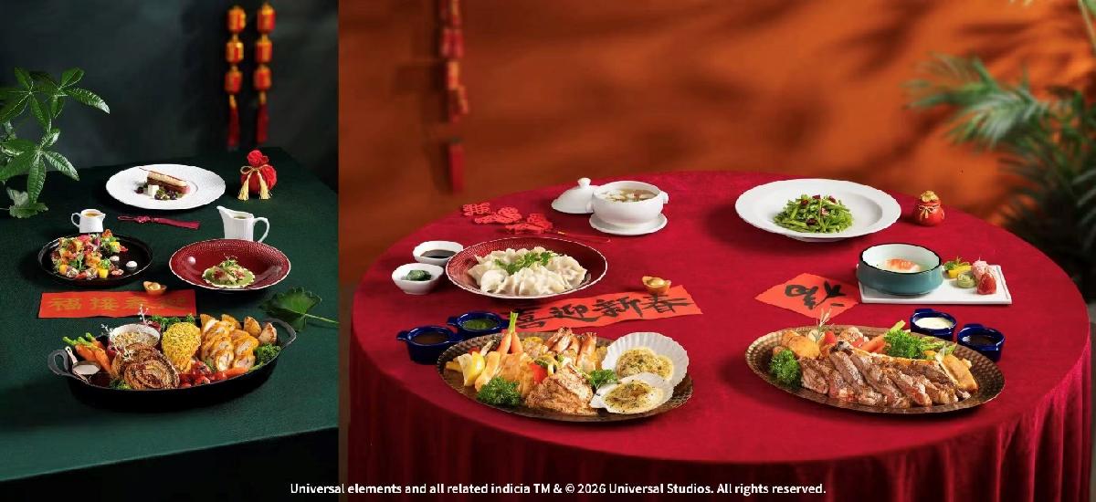 北京环球影城内的落霞餐厅、哈蒙德餐厅的年夜大餐中外美食合璧,全家围坐暖意融融。在环球影城大酒店,来自照明娱乐的小黄人与格鲁一家将身着新春盛装亮相莲花园餐厅,为游客带来电影角色互动问候。诺金度假酒店禾家中餐厅则精心推出多款团圆宴套餐,以精致中式美馔陪伴游客共同庆祝马年新春。此外,北京环球城市大道多家餐厅亦同步上新节庆美食,以各具创意的年“味”表达,让团圆喜悦与味蕾惊喜共同绽放。
