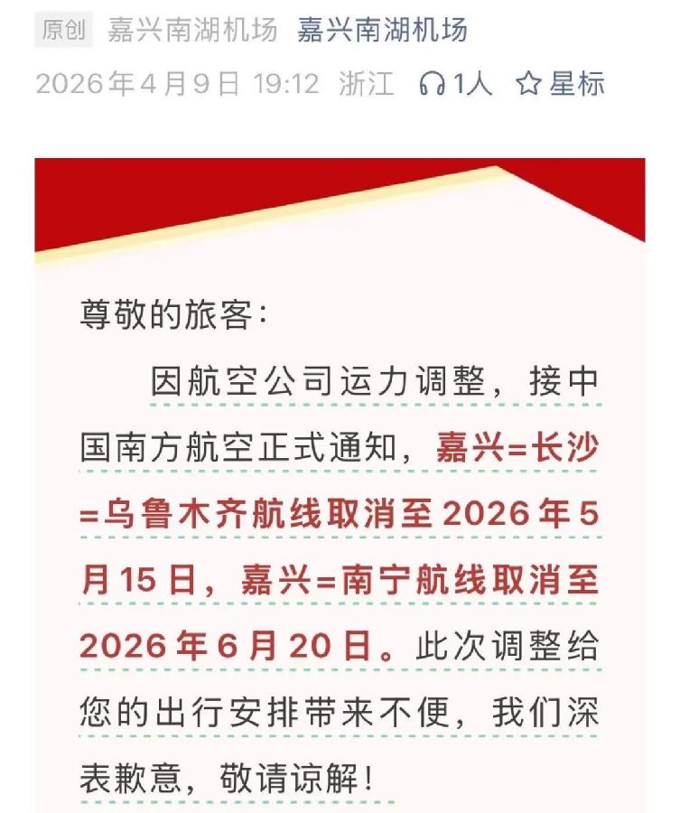 图源:嘉兴南湖机场公众号