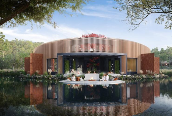 在黄金海岸腹地的坦伯林山,Sol Elements依水而建,三面环绕着宁静的自然美景,从养生疗愈的四种元素与优雅的日本侘寂美学中汲取灵感。